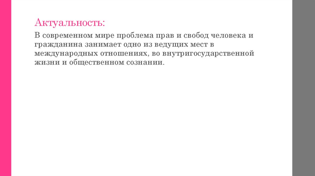 Актуальность:В современном мире проблема прав и свобод человека и