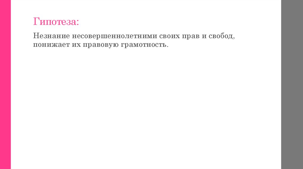 Гипотеза:Незнание несовершеннолетними своих прав и свобод,