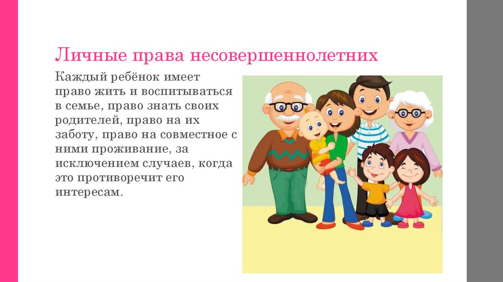 Личные права несовершеннолетнихКаждый ребёнок имеет