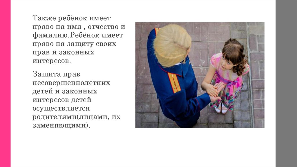 Также ребёнок имеетправо на имя , отчество и