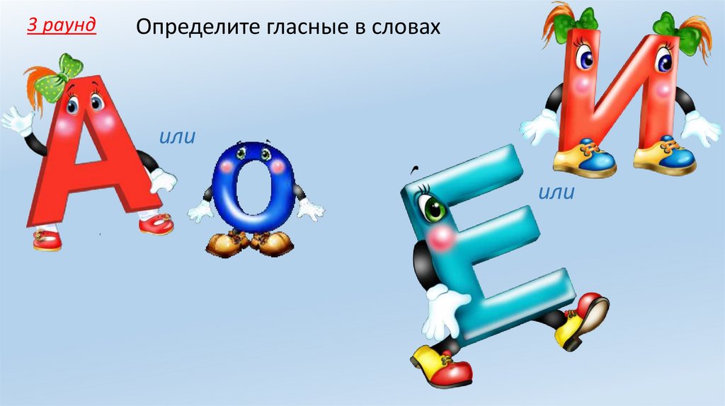 Определите гласные в словах