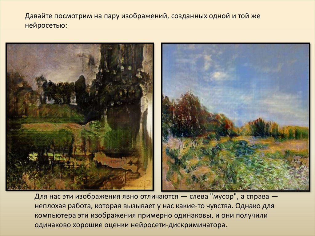Для нас эти изображения явно отличаются — слева "мусор", а справа —