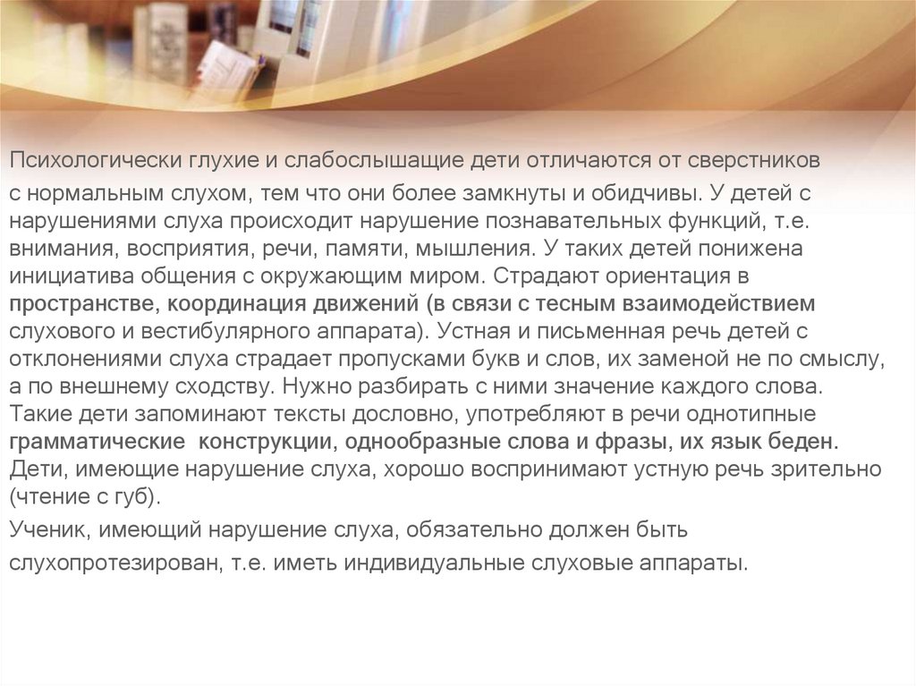 нарушениями слуха происходит нарушение познавательных функций, т.е.