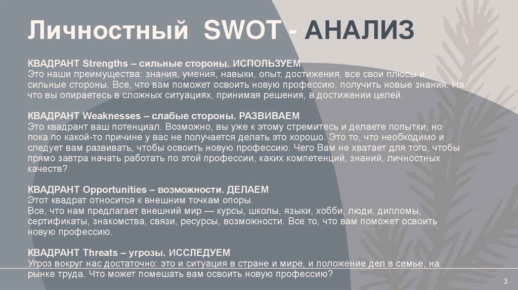 Личностный SWОT - АНАЛИЗКВАДРАНТ Strengths – сильные стороны. ИСПОЛЬЗУЕМ