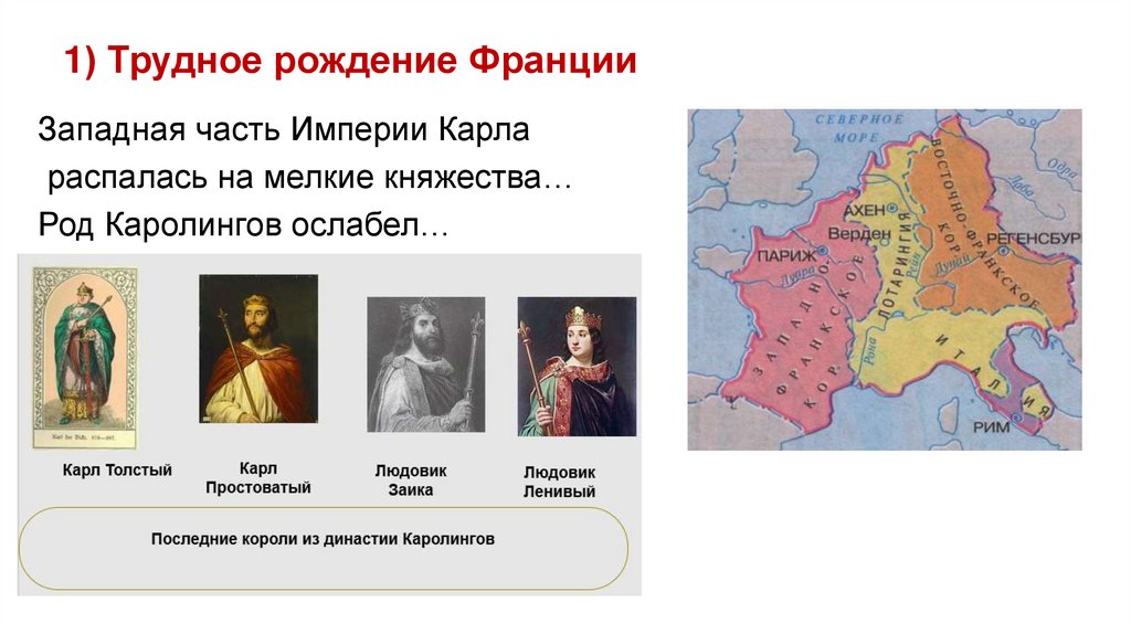 1) Трудное рождение ФранцииЗападная часть Империи Карла