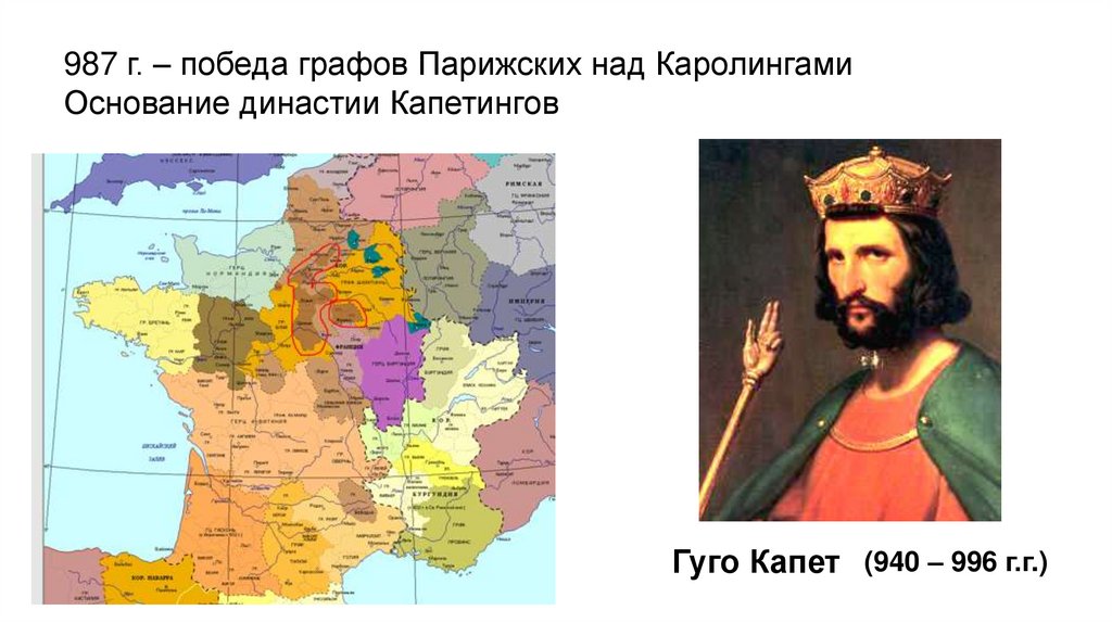 987 г. – победа графов Парижских над КаролингамиОснование династии Капетингов