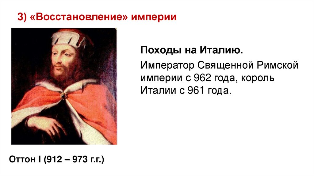 Оттон I (912 – 973 г.г.)955 г. – венгры