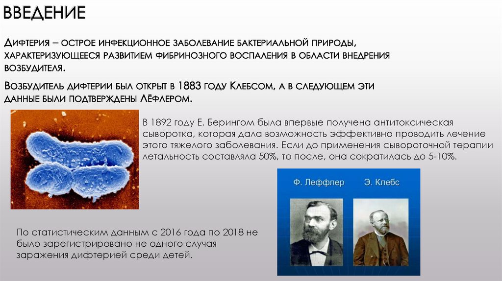 В 1892 году Е. Берингом была впервые получена антитоксическаясыворотка, которая дала возможность эффективно проводить лечение