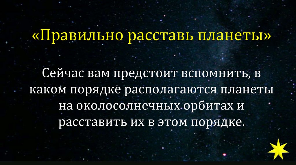 «Правильно расставь планеты»Сейчас вам предстоит вспомнить, в
