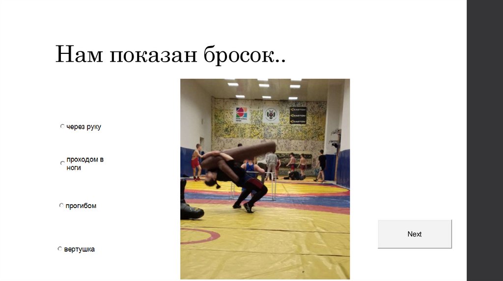 Нам показан бросок..Next