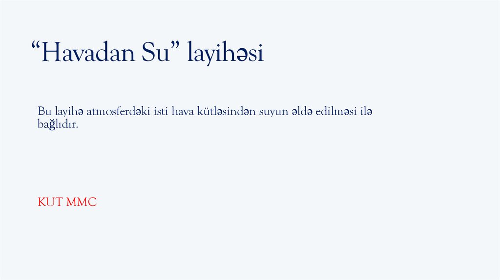 “Havadan Su” layihəsiBu layihə atmosferdəki isti hava kütləsindən suyun əldə edilməsi ilə