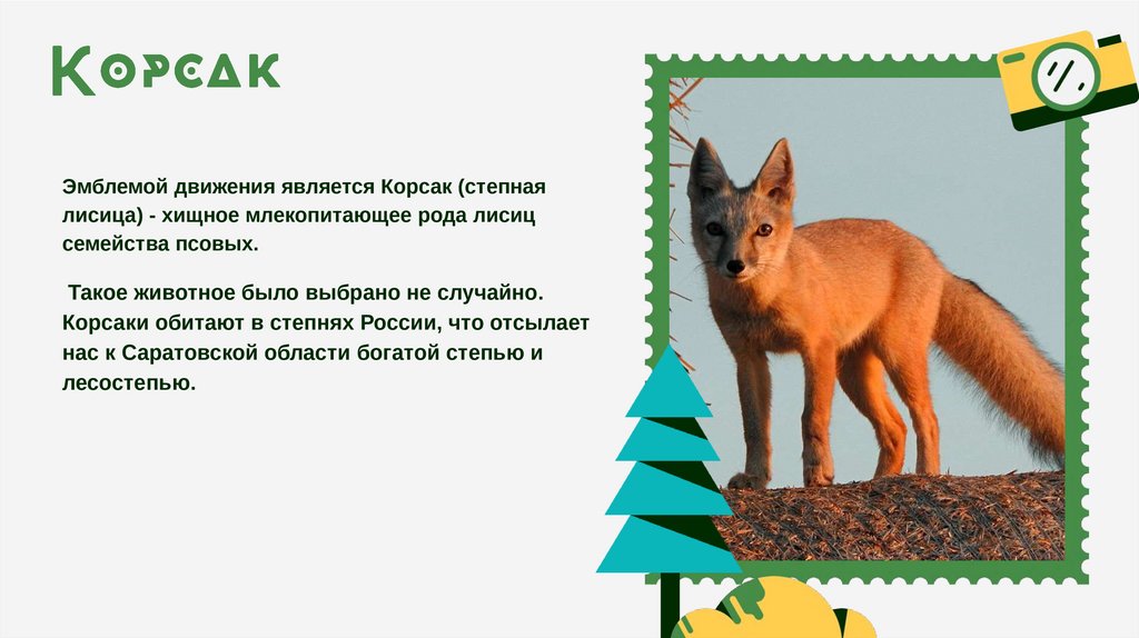 Эмблемой движения является Корсак (степнаялисица) - хищное млекопитающее рода лисиц