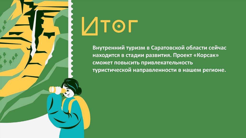 Внутренний туризм в Саратовской области сейчаснаходится в стадии развития. Проект «Корсак»