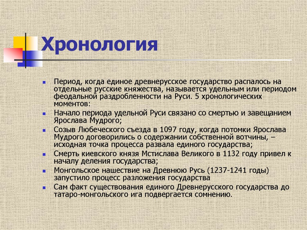 ХронологияПериод, когда единое древнерусское государство распалось на