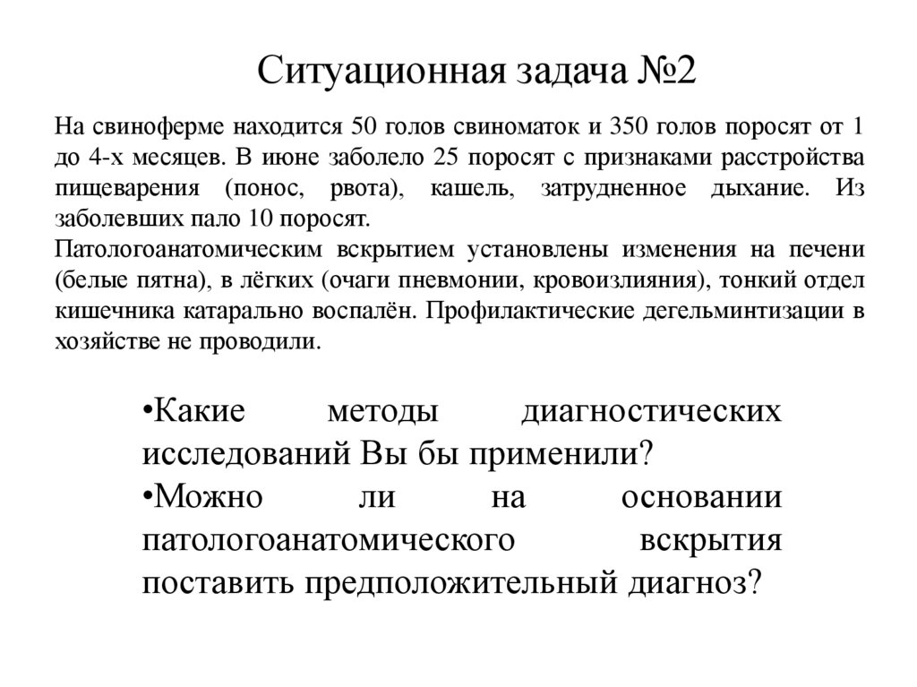 Ситуационная задача №2На свиноферме находится 50 голов свиноматок и 350 голов поросят от 1