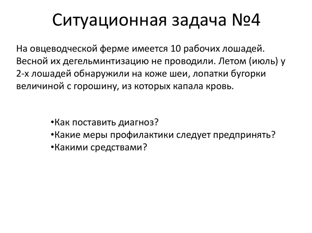 Ситуационная задача №4На овцеводческой ферме имеется 10 рабочих лошадей.