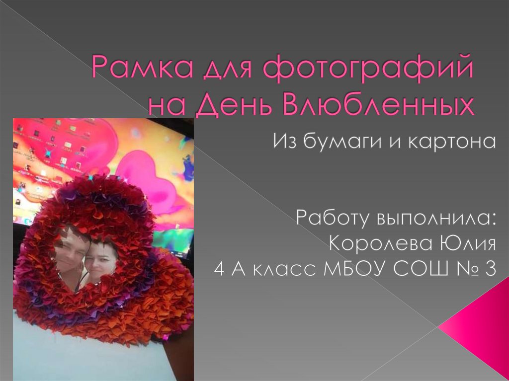 Аппликация "Рамка для фотографий на День Влюбленных"
