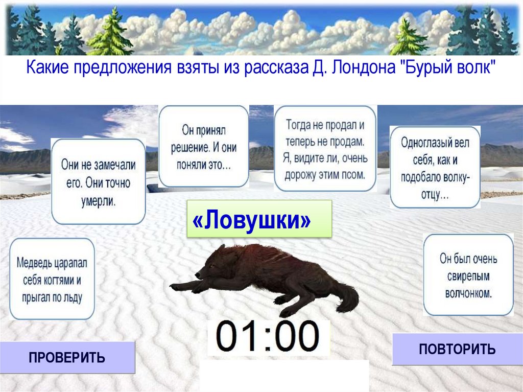 Какие предложения взяты из рассказа Д. Лондона "Бурый волк"«Ловушки»