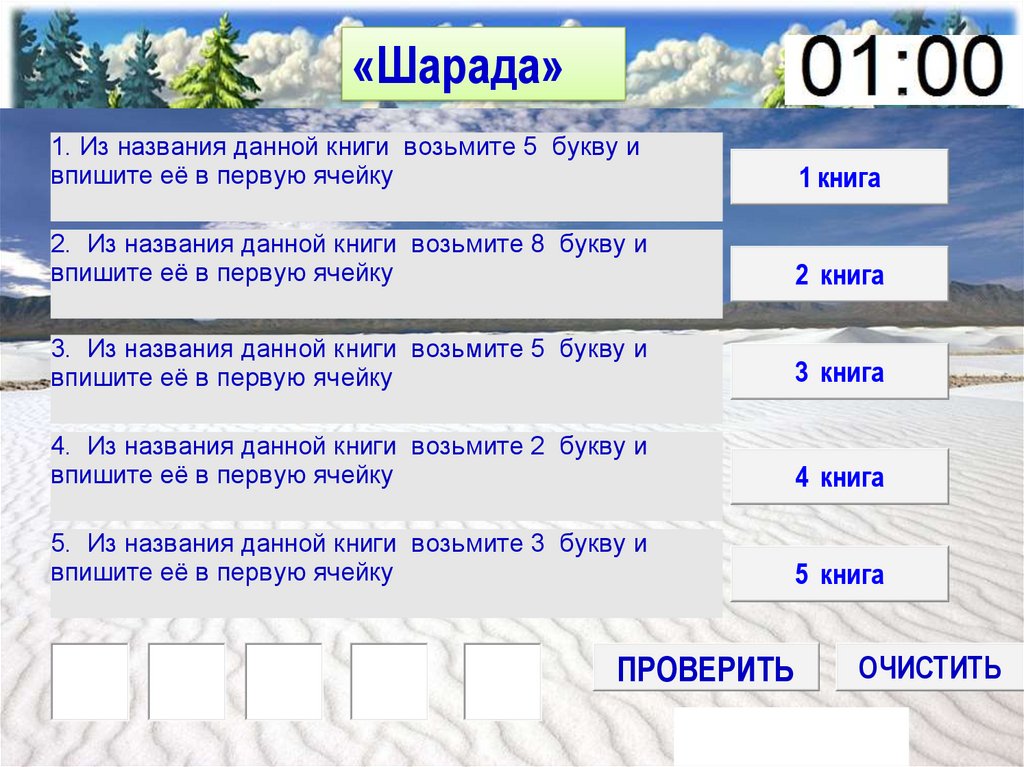 «Шарада»1. Из названия данной книги возьмите 5 букву и