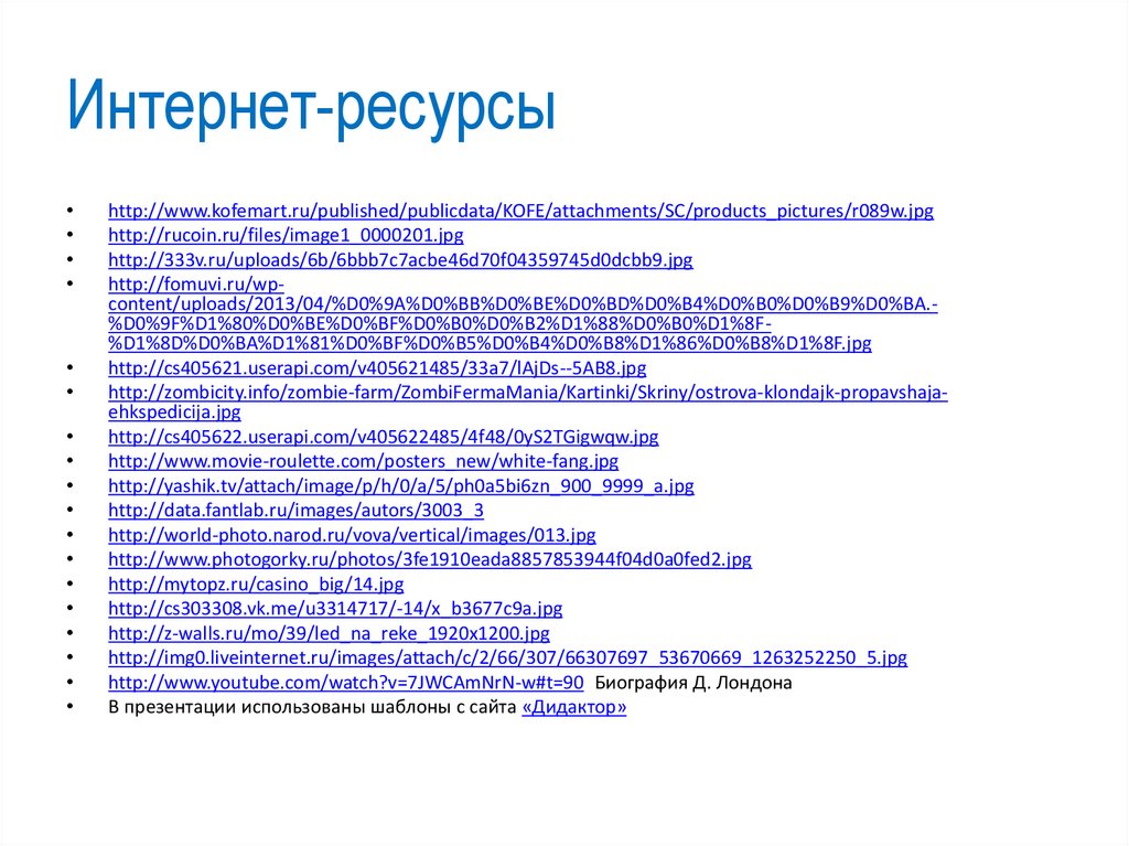 http://www.youtube.com/watch?v=7JWCAmNrN-w#t=90 Биография Д. Лондона