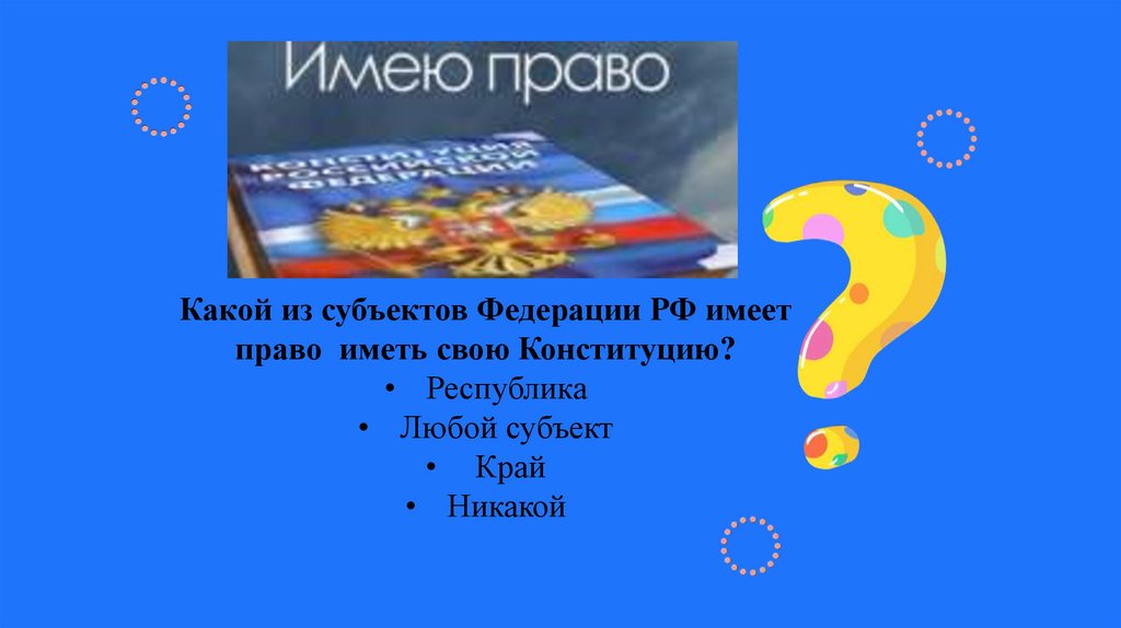 Какой из субъектов Федерации РФ имеетправо иметь свою Конституцию?