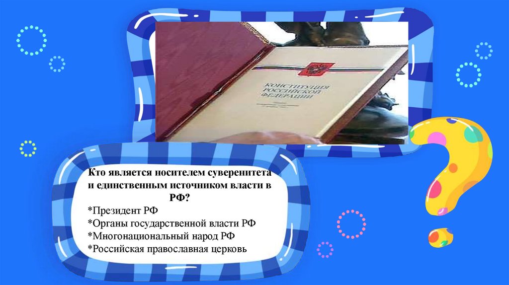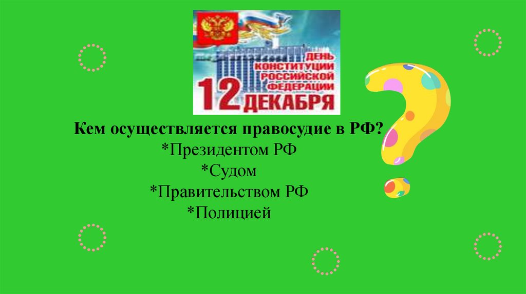 Кем осуществляется правосудие в РФ?*Президентом РФ