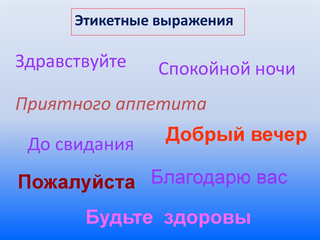 Этикетные выраженияЗдравствуйте