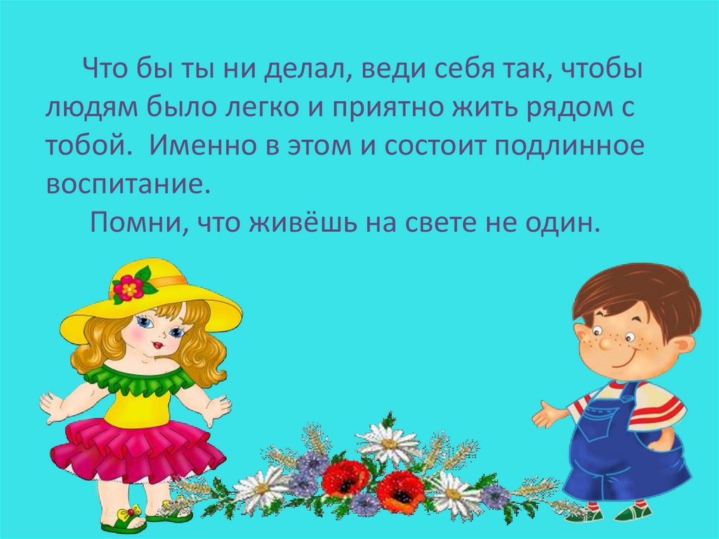 Что бы ты ни делал, веди себя так, чтобылюдям было легко и приятно жить рядом с