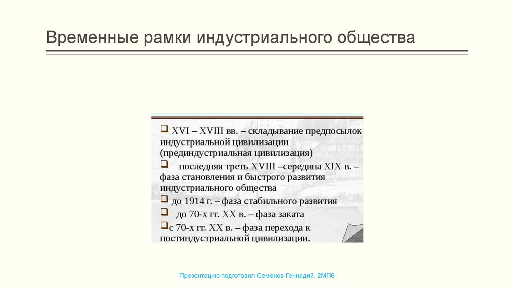 Временные рамки индустриального обществаПрезентацию подготовил Семенов Геннадий. 2МП6
