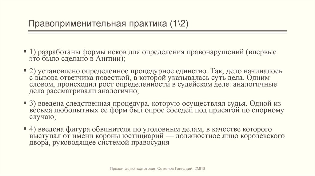 Правоприменительная практика (1\2)1) разработаны формы исков для определения правонарушений (впервые
