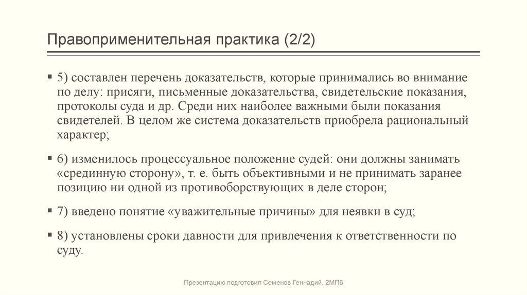 Правоприменительная практика (2/2)5) составлен перечень доказательств, которые принимались во внимание