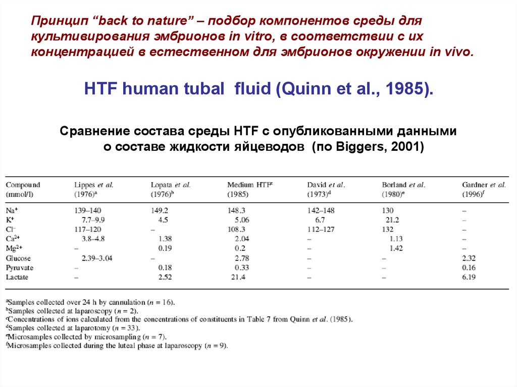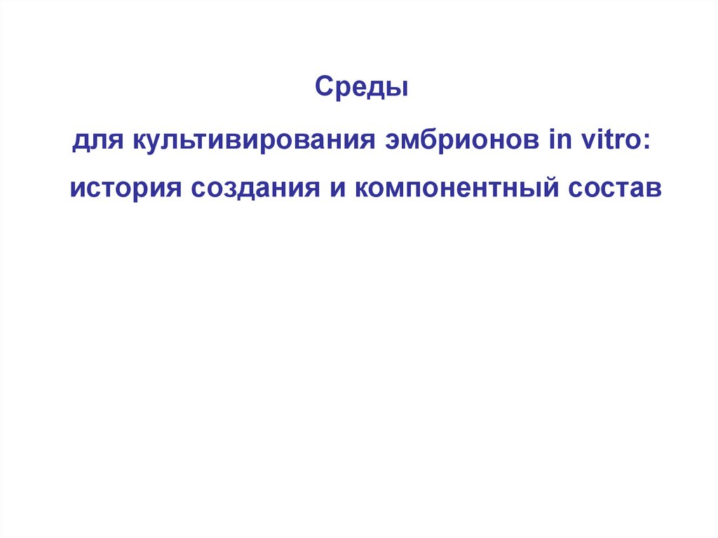 Принцип “back to nature” – подбор компонентов среды длякультивирования эмбрионов in vitro, в соответствии с их