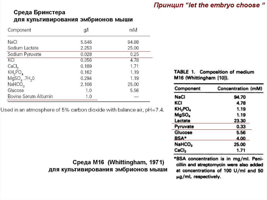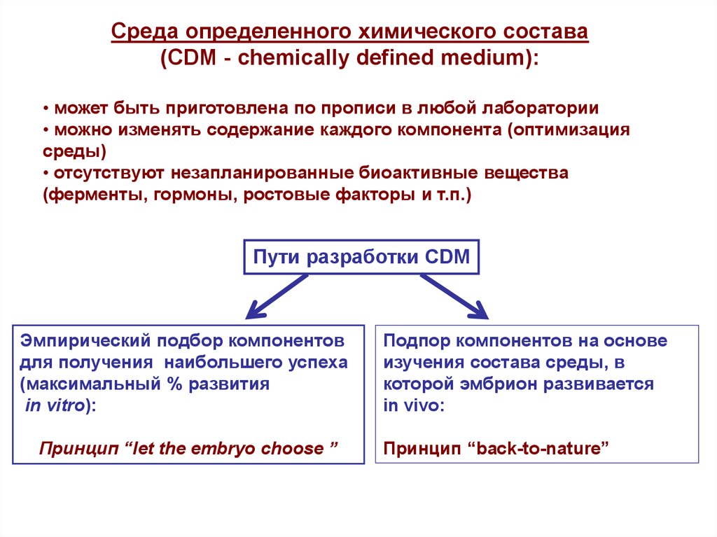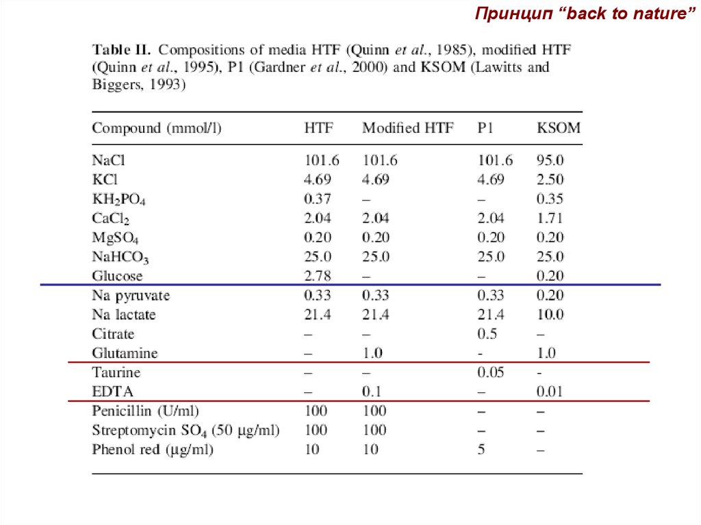 Принцип “back to nature”Состав CD (chemically defined) сред для культивирования эмбрионов
