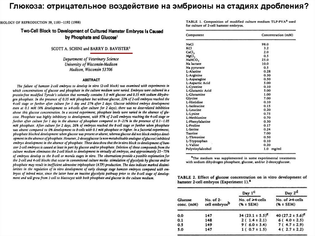 Глюкоза: отрицательное воздействие на эмбрионы на стадиях дробления?15.