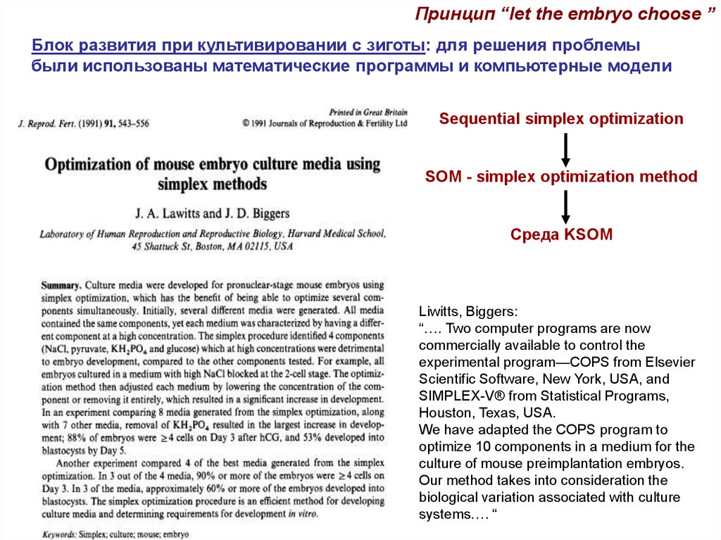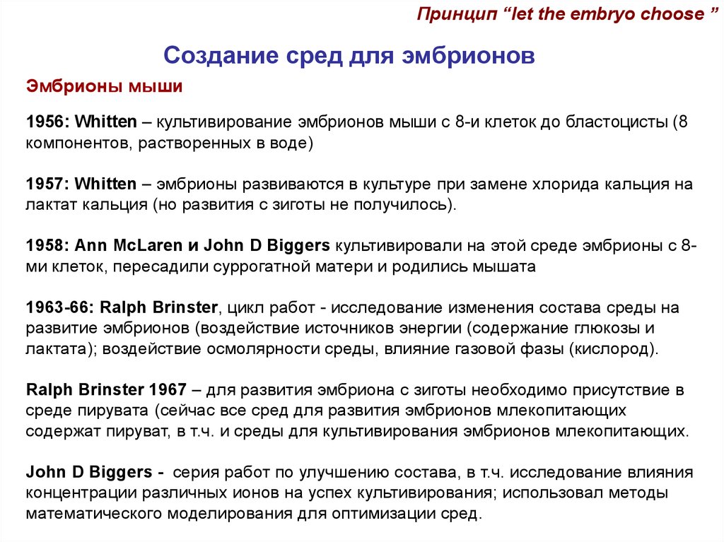 Принцип “let the embryo choose ”Создание сред для эмбрионов