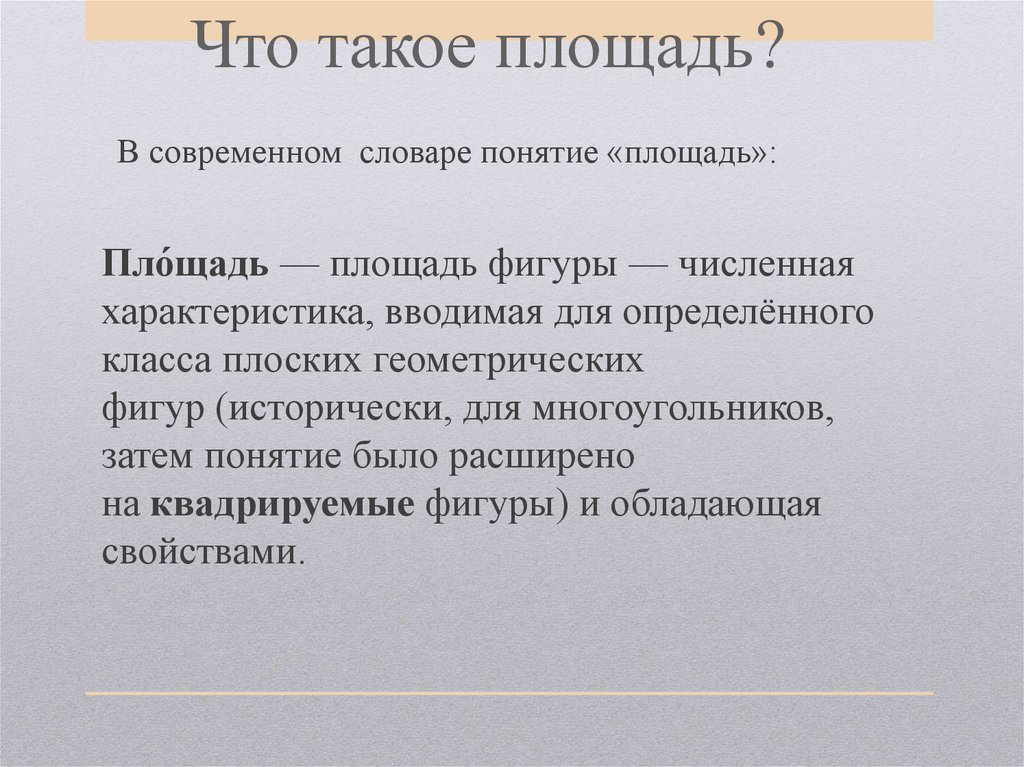 Площадь. Свойства площади