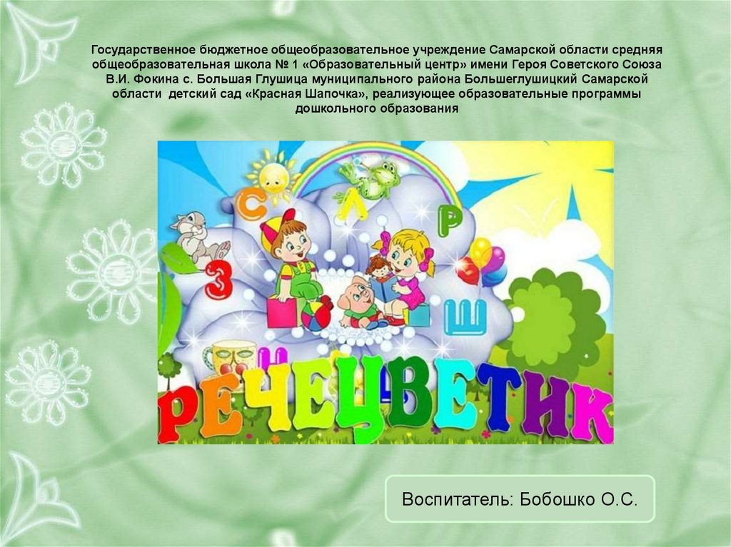 Государственное бюджетное общеобразовательное учреждение Самарской области средняяобщеобразовательная школа № 1 «Образовательный центр» имени Героя Советского Союза