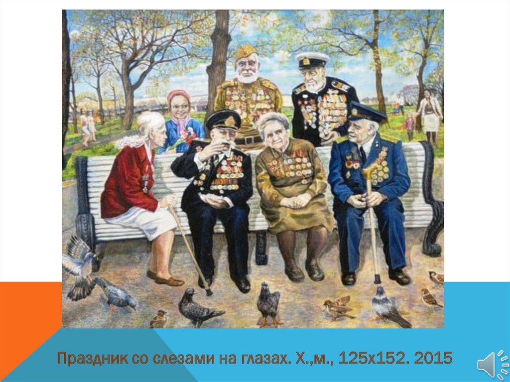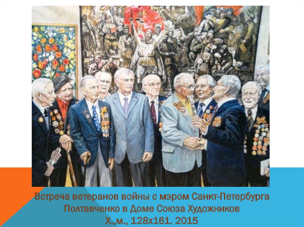 Встреча ветеранов войны в честь 70-летия Победы в ДомеСоюза Художников. Х.,м., 126х160. 2015