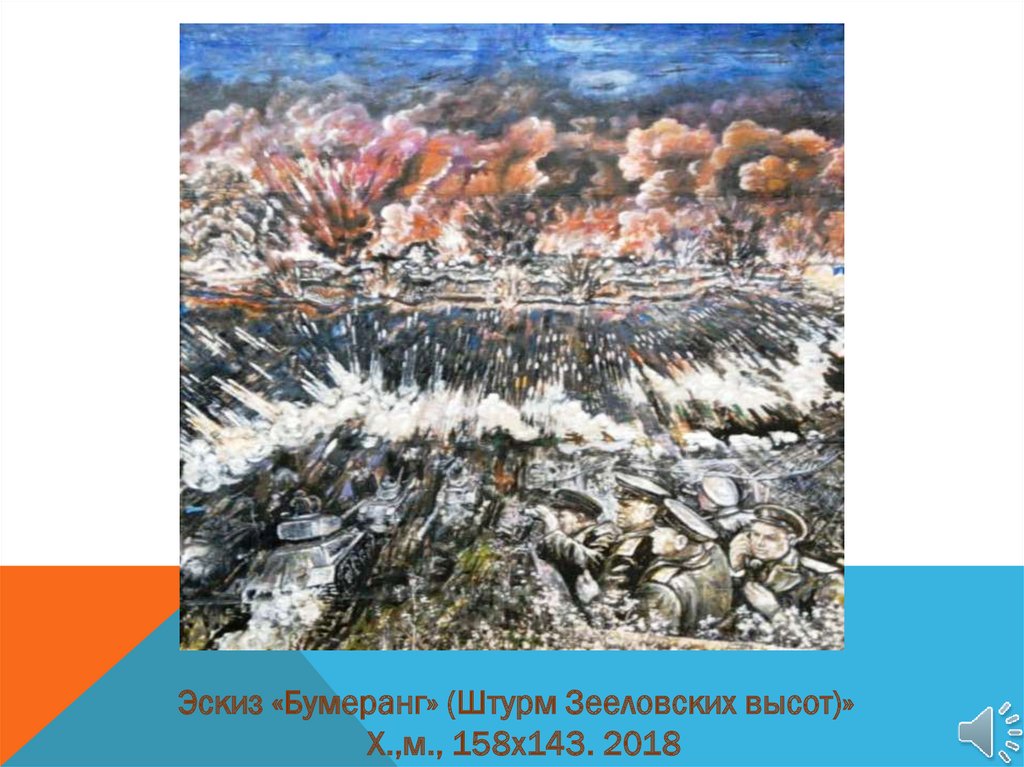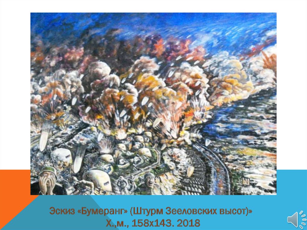 Эскиз «Бумеранг» (Штурм Зееловских высот)»Х.,м., 158х143. 2018
