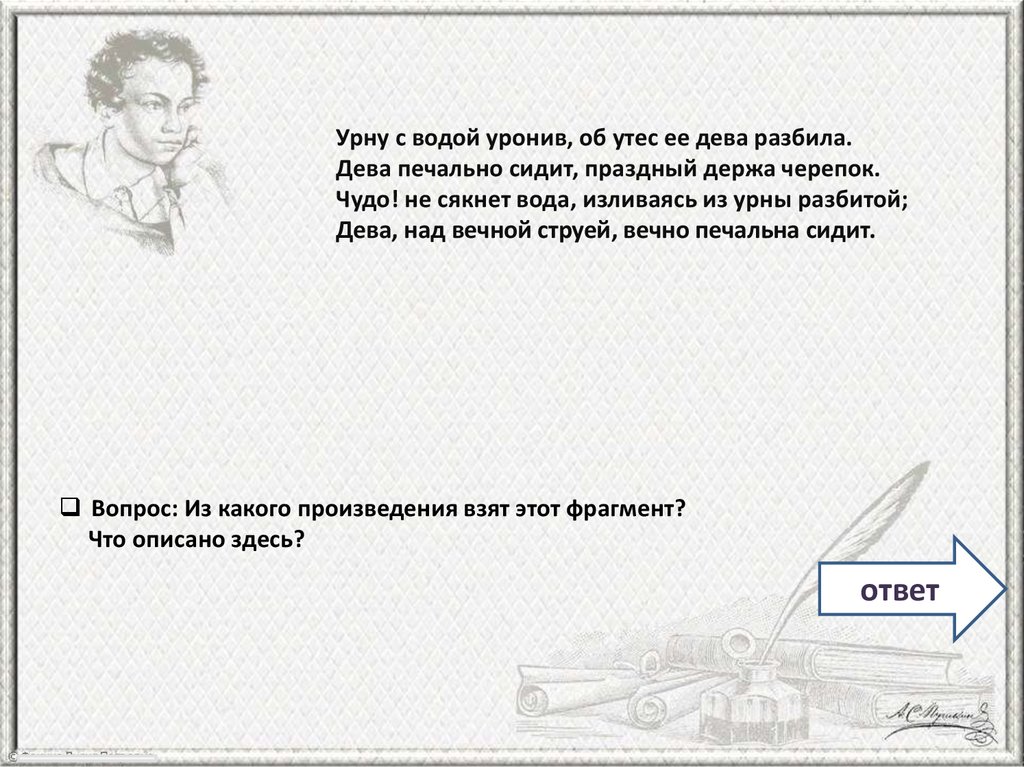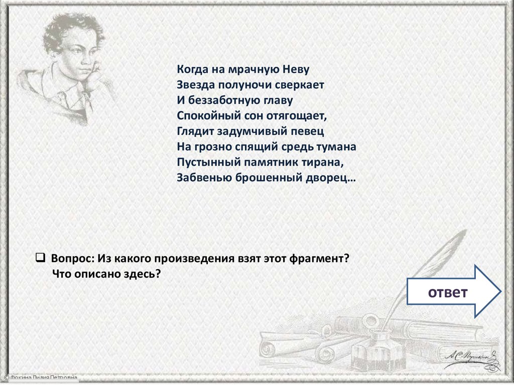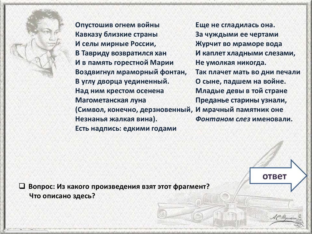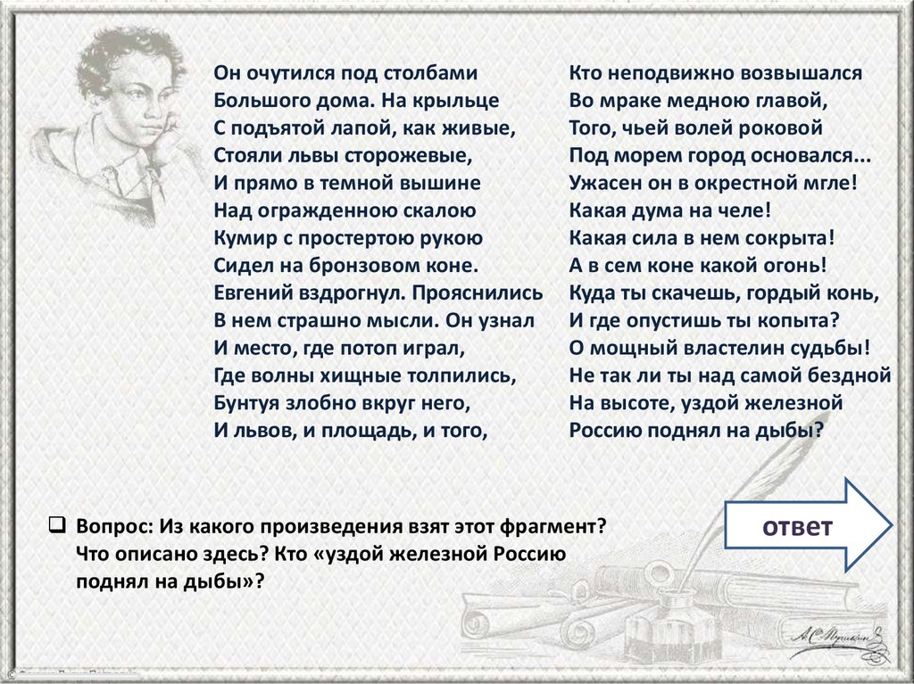 Вопрос: Из какого произведения взят этот фрагмент?
