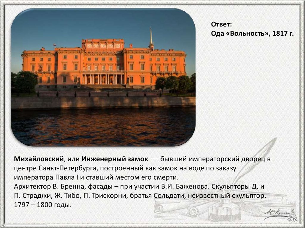 Михайловский, или Инженерный замок — бывший императорский дворец в
