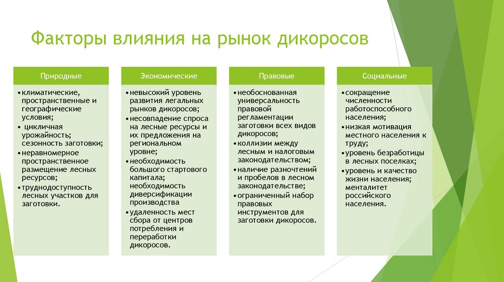 Факторы влияния на рынок дикоросовПриродные