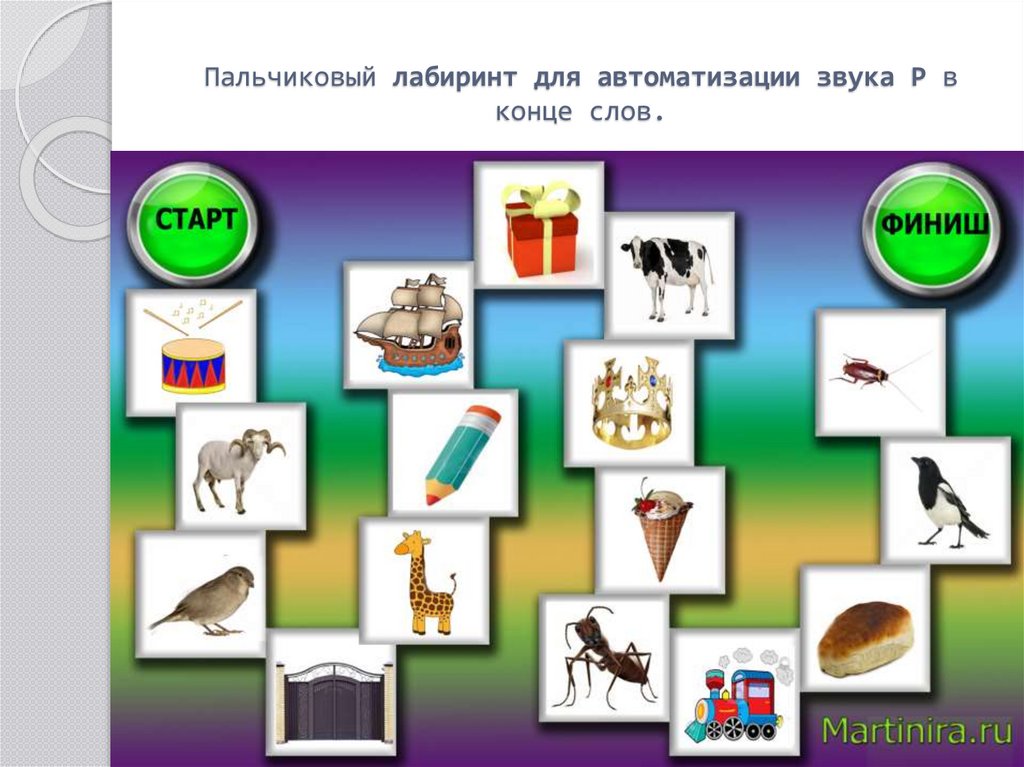 Пальчиковый лабиринт для автоматизации звука Р вначале слов.