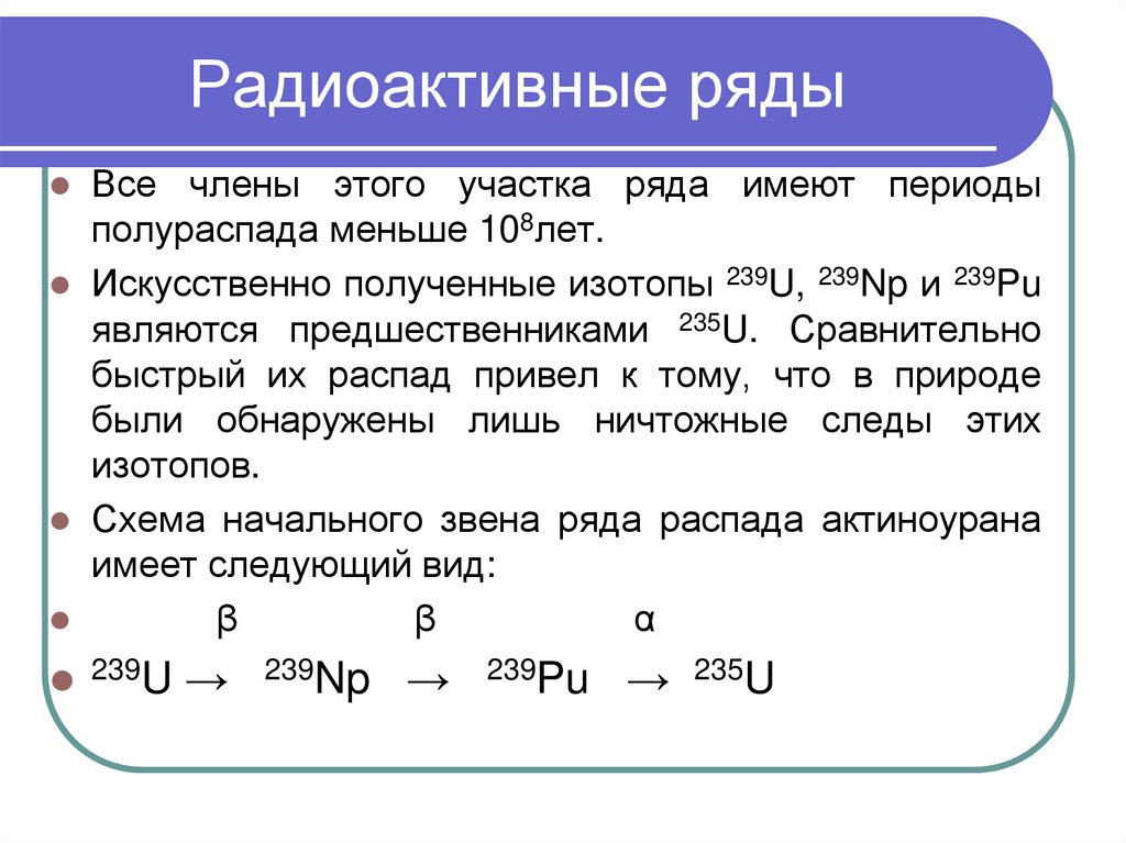 Физика ядра и ионизирующего излучения. Радиоактивные ряды