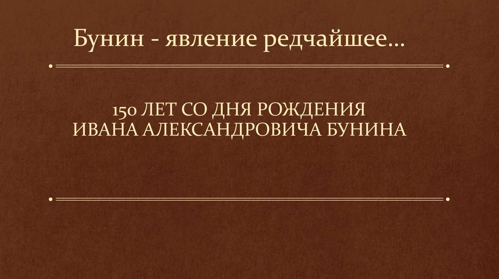 Бунин - явление редчайшее…150 ЛЕТ СО ДНЯ РОЖДЕНИЯ