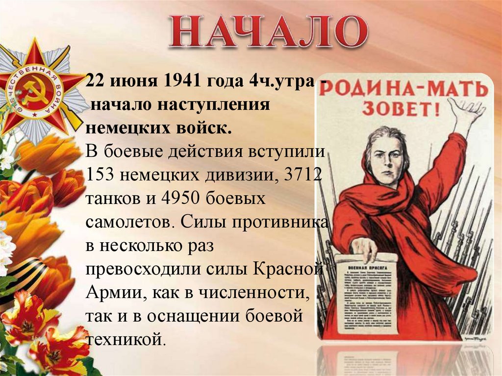 22 июня 1941 года 4ч.утра начало наступлениянемецких войск.