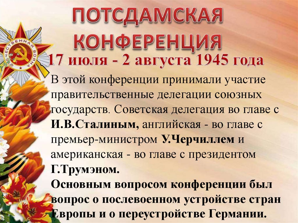 В этой конференции принимали участиеправительственные делегации союзных
