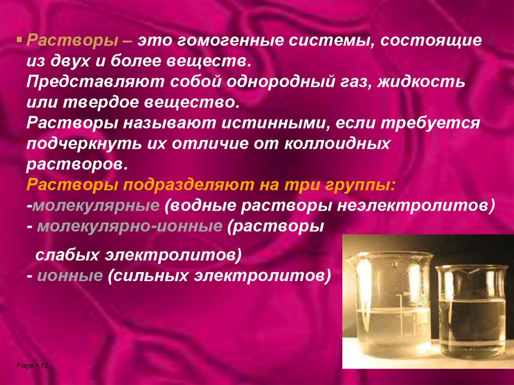 Растворы – это гомогенные системы, состоящиеиз двух и более веществ.