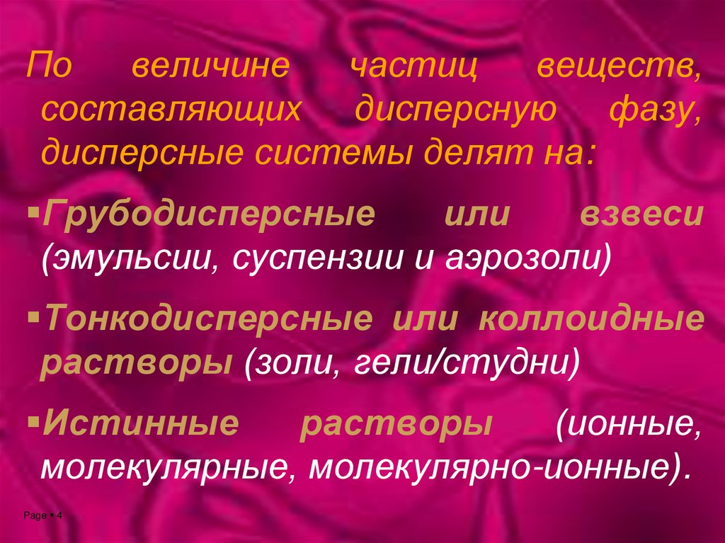дисперсные системы делят на: