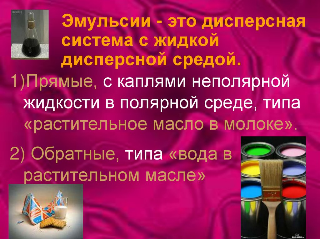 Эмульсии - это дисперснаясистема с жидкой